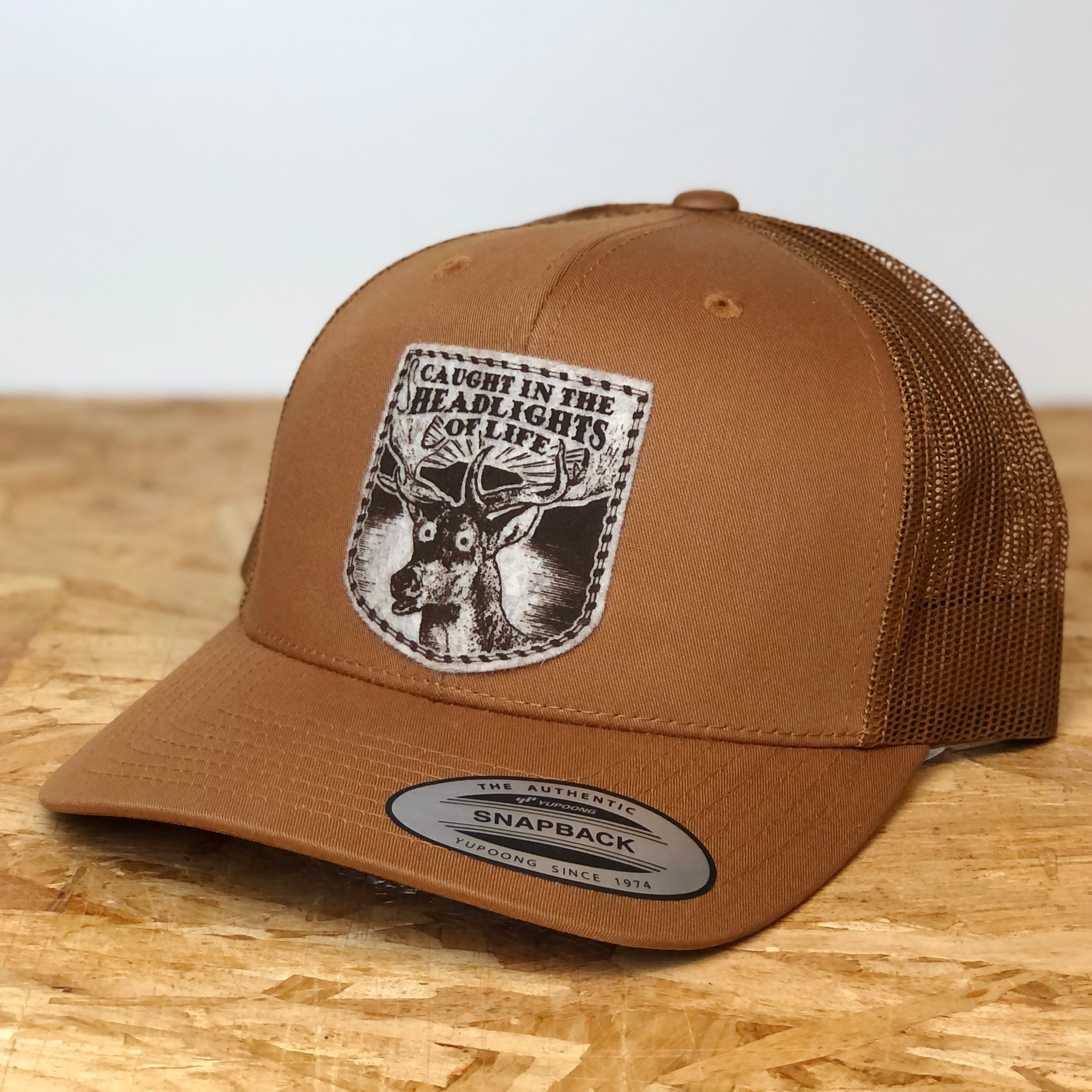 Genuine FlexFit Yupoong snapback Caps with our original designs hand-printed on 100% wool felt patches.