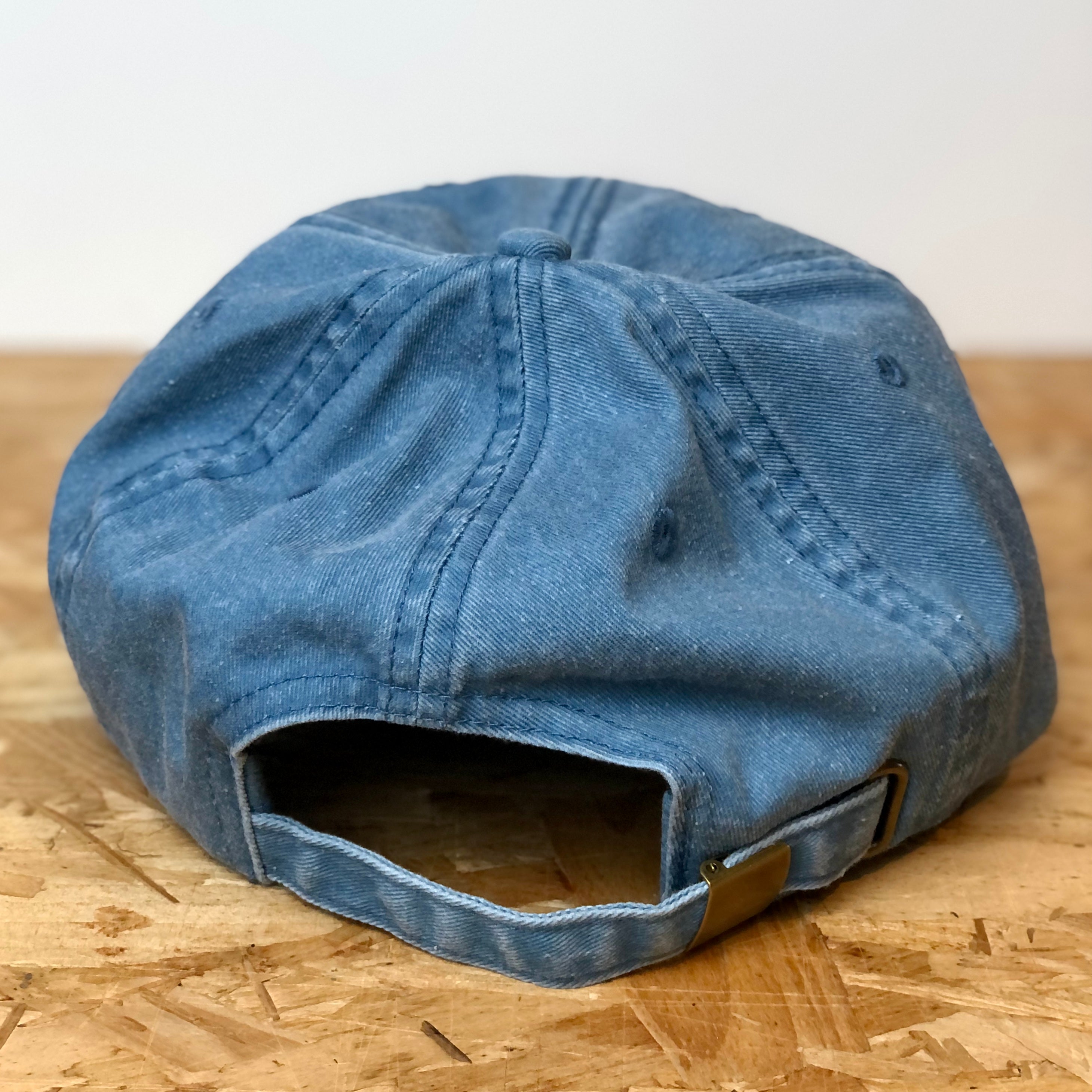 For that worn in look, a vintage style, brushed and washed cotton cap. Brass-effect adjustable buckle ‘round the back, 100% wool felt, hand-printed badge ‘round the front.